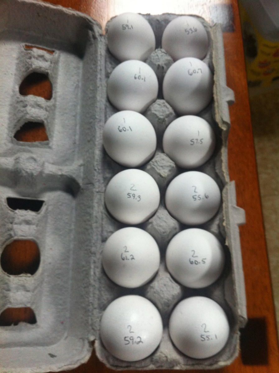 IMG_3033 Published March 31, 2013 at 1936 × 2592 in Egg-speriments Next → Eggs labeled with their mass and initial carton number.