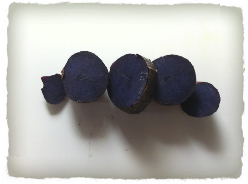 - 1 small purple-fleshed potato. In our case, cooked. (If you are adventurous, try growing some!)