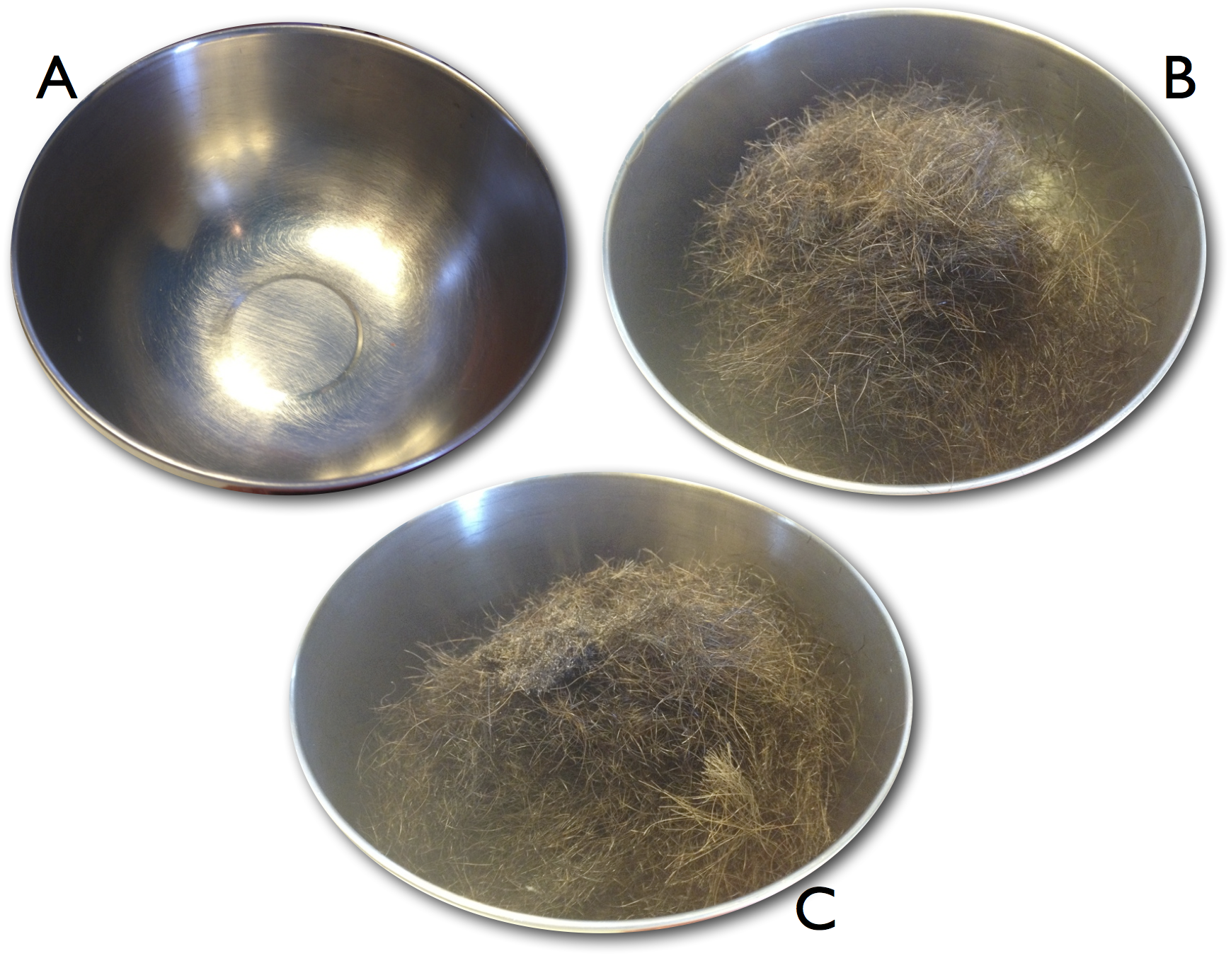 Beard collection bowl. a) Before rough cut, b) after rough cut, c) after rough trim. No photo of the fine trim was taken.