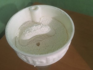 The resulting print looked good. However, many of the seams were very obvious, and there was a bit of ghosting in the lettering. There is also a slight deformation of the reservoir wall near the lip.