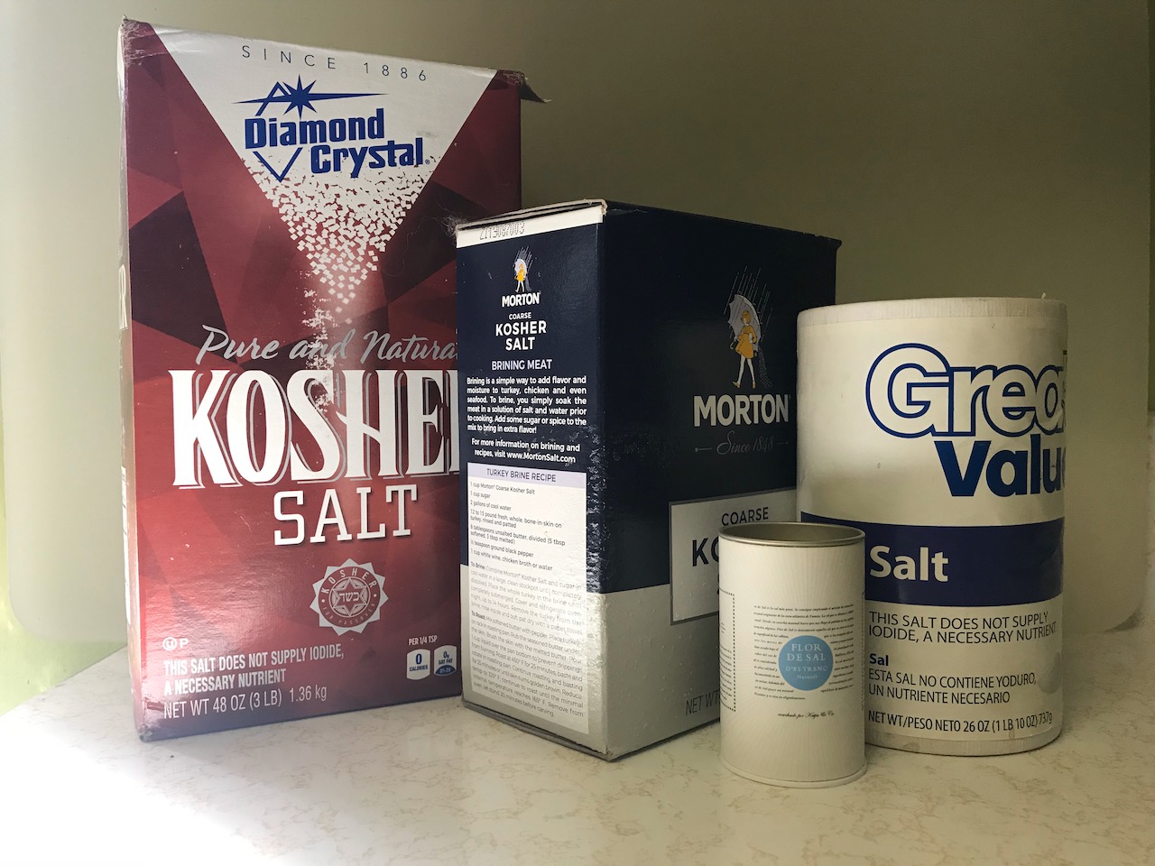 - Great Value salt (non-iodized, “table” salt)